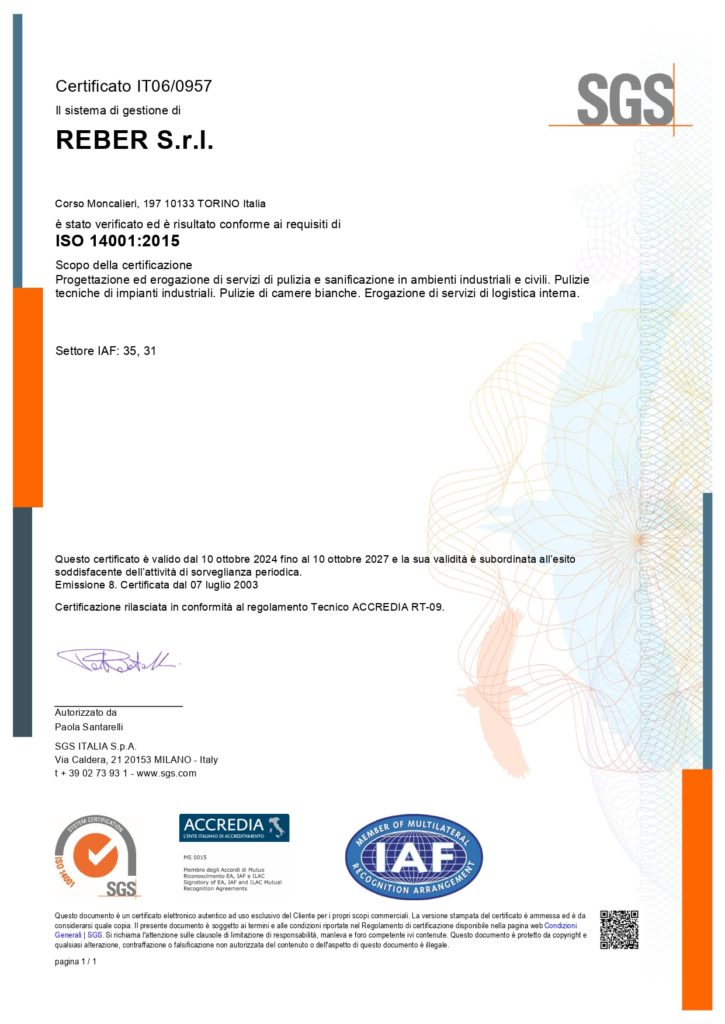 - UNI EN ISO 14001 – Sistema di Gestione Ambientale